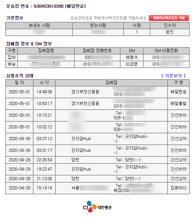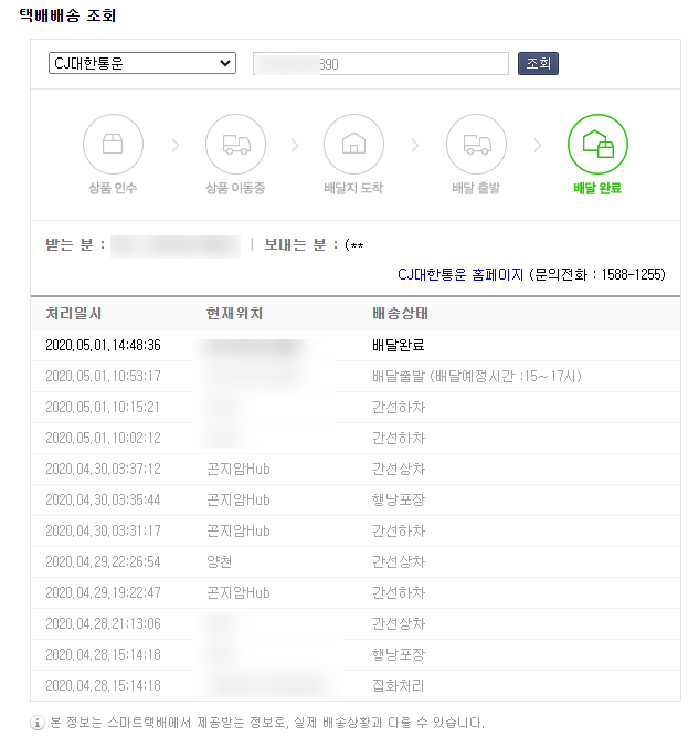블로그와 영상 채널을 운영한다고 투자한 물품이 많다보니 택배를 받을 일이 많고 그에 따라 우체국을 제외하고 3손가락 안에 드는 택배사 CJ대한통운을 이용하게 될 일이 많았습니다. 일반적인 택배조회는 정학하게 나와있지 않죠..