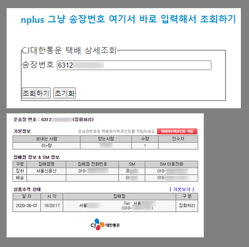 nplus 그냥 송장번호 여기서 바로 입력해서 조회하기