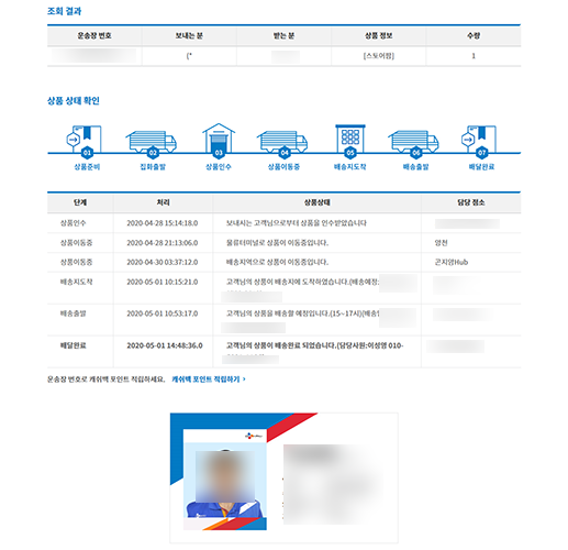 !사실 이건 택배회사 기본 내부 전산망에다가 임의로 송장번호만 조회하는 건데요. 택배 기사님들의 개인정보가 조회되는 만큼 해당 송장번호의 관계자 외에는 정보를 보기만해도 그것 자체로도 바로 법에 저촉되므로 해당 송장번호의 고객 본인만 조회하세요.