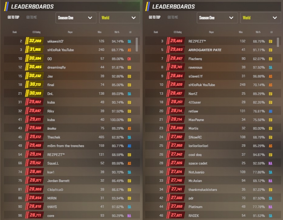 10) 24년 1월 초 일부 치트 VAC감지로 인한 정말 극히 일부 인간들만 VAC Ban을 당했는데..(간에 기별도 안감) 래더보드의 상위 유저들이 사라지는 현상을 볼 수 있다. 아래 스샷 참조