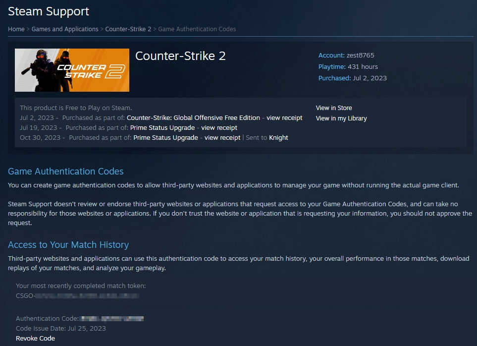 위의 웹사이트에 접속한 후에, Your most recently completed match token과 Authentication Code 코드를(생성해줘야함) 함께 넣어주면 매치 트래킹이 된다. (사이트마다 Authentication Code 만 요구하는 곳이 있고 둘다 요구하는 곳이 있고 하다.)